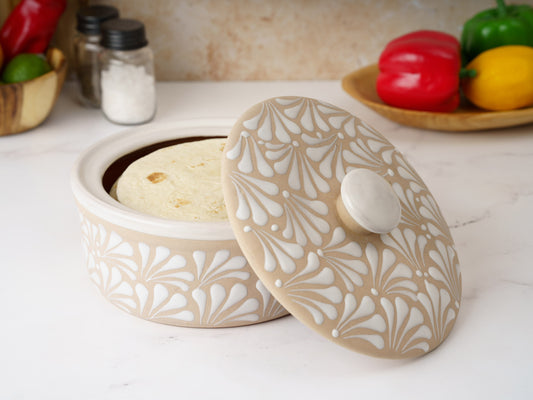Tortilla Warmer - Puebla Style - White on White