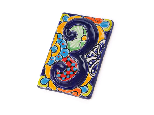 Talavera Address Number Tiles - Cobalt Raised Numbers